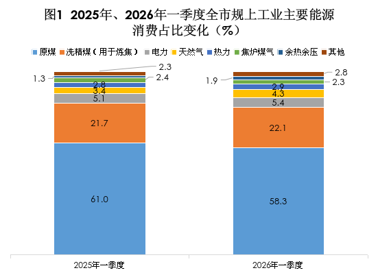 一季度,全市规上工业生产平稳运行,能源消费量总体下降,高耗能行业用能减少,能源消费结构进一步优化,为2026年节能降耗打下坚实基础。