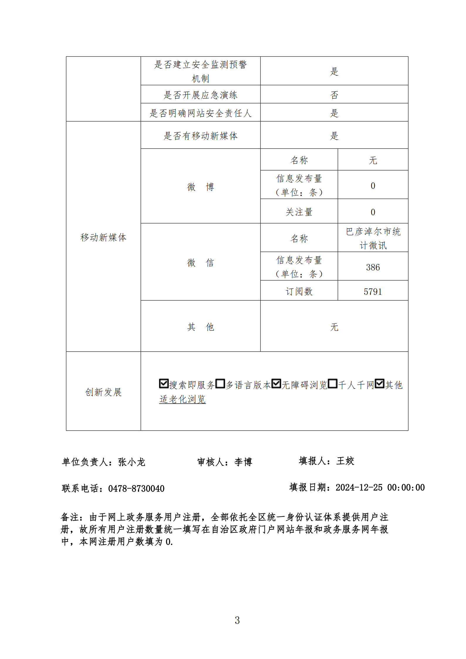 2024年巴彦淖尔市统计局政府网站工作年度报表