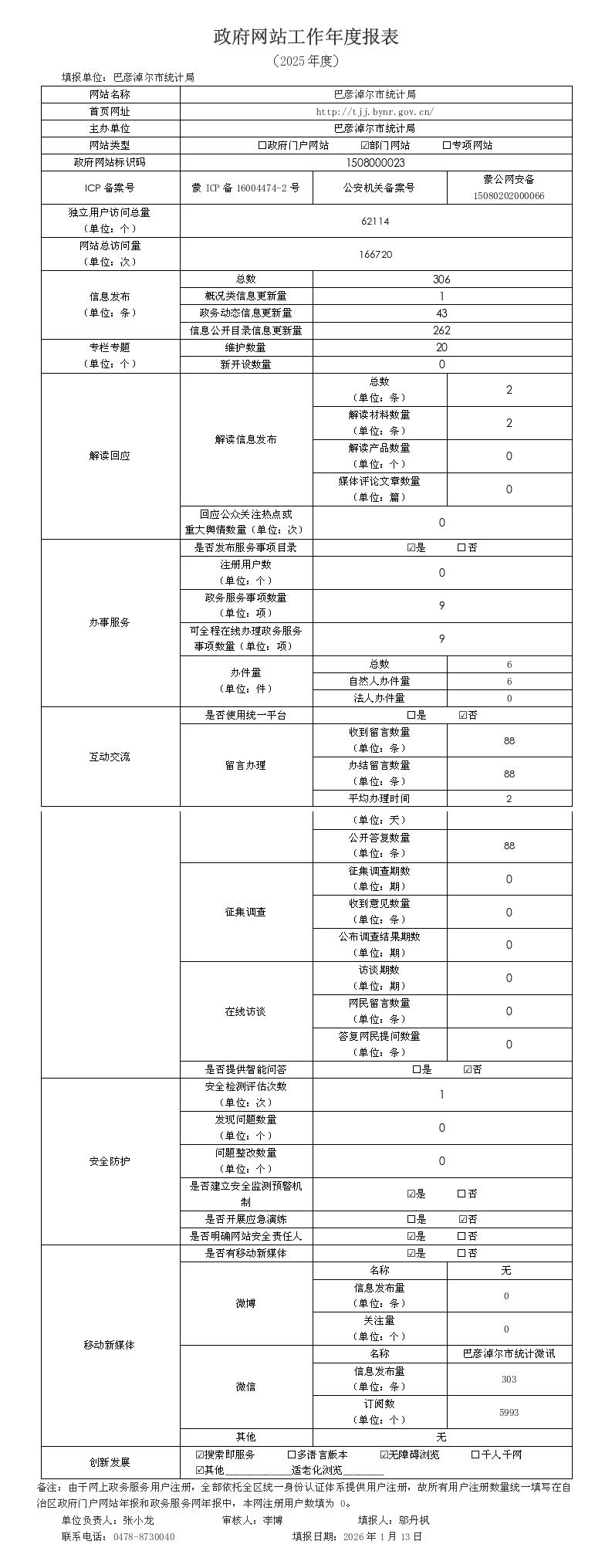 2025年巴彦淖尔市统计局政府网站工作年度报表